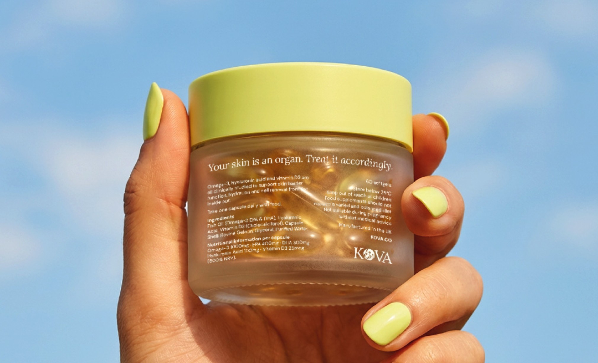 KOVA approached us to build a brand world that reflected the seriousness of their formulations without feeling clinical or cold. The brief was to position them in the beauty and supplement space simultaneously, appealing to a consumer who is as likely to shop at Space NK as they are to read an ingredient label. The creative direction spans packaging, campaign photography, digital and out of home, with a visual identity built around restraint, confidence and a hero colour that cuts through category conventions.