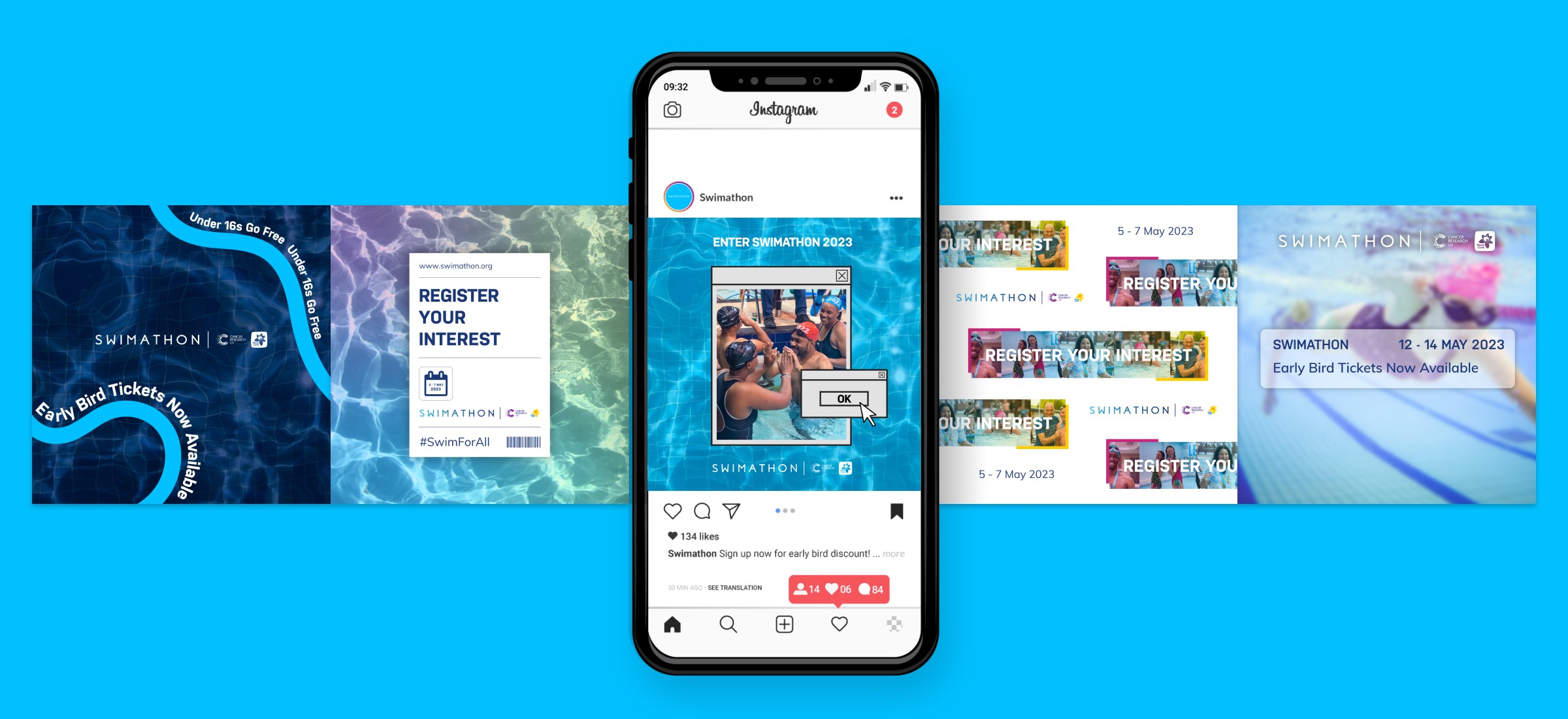 Swimathon is a nationwide fundraising event supporting Cancer Research UK. I designed a suite of printed campaign assets used across venues and communities throughout the UK.